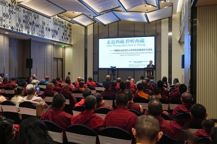 | 中新社加德满都6月24日电 (记者 崔楠)正在尼泊尔访问的中国藏学家交流团24日在尼首都加德满都举办交流会,吸引近百名尼泊尔藏传佛教僧尼、旅尼藏胞、尼泊尔青年代表及中尼两国媒... |